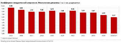 Разрыв между городом и селом сохраняется, но постепенно сокращается. В 2025 году коэффициент младенческой смертности составил: