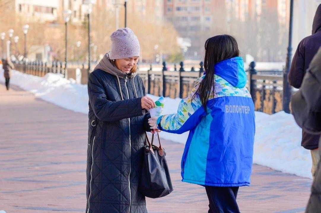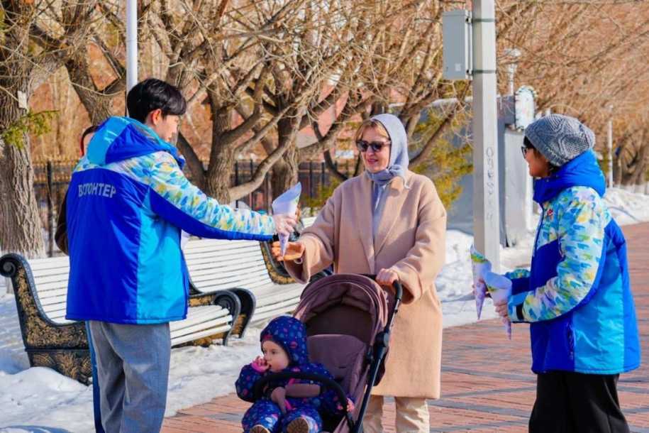 Мы решили порадовать астанчан теплым солнечным весенним днем. В честь Великого Дня Улуса мы раздали 6 кг баурсаков. Так мы хотели подарить тепло и хорошее настроение, – отметила одна из волонтеров Аяна Курмантай.