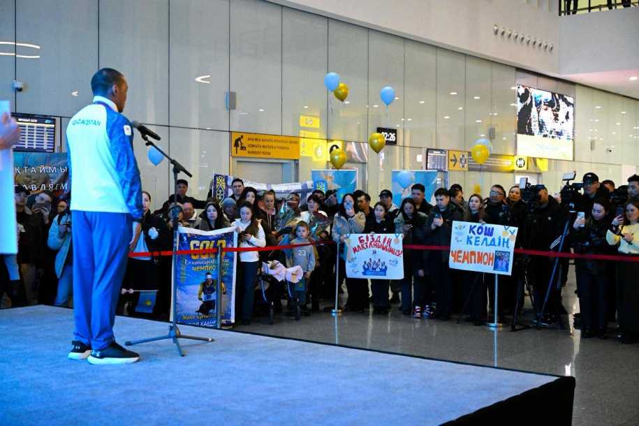 Сегодня, 17 марта, в аэропорту столицы состоялась торжественная встреча чемпиона зимних Паралимпийских игр по пара биатлону и бронзового призёра по пара лыжным гонкам Ербола Хамитова. Об этом сообщили в пресс-службе Министерства туризма и спорта РК, передает kazlenta.kz.