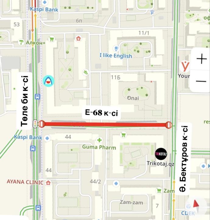 - с 5 апреля по июнь текущего года планируется полное перекрытие движения автотранспортных средств на участке улицы Е68 от ул. А. Бектурова до ул. Толе би в связи с началом строительных работ.