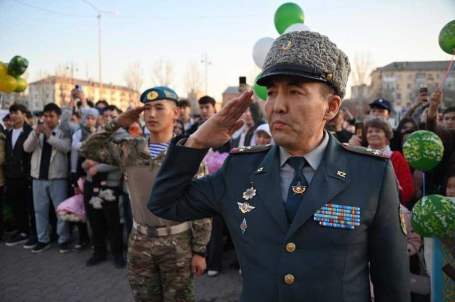 Представитель Департамента по делам обороны города Астаны полковник Гани Артыков выстроил молодых солдат в строй и выразил благодарность им и их родителям.