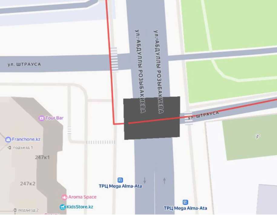 По информации пресс-службы акимата, с 00:00 до 06:00 ч. 11 апреля на перекрестках улицы Розыбакиева–Штрауса и Розыбакиева–Жандосова будет частично ограничено движение автотранспорта.