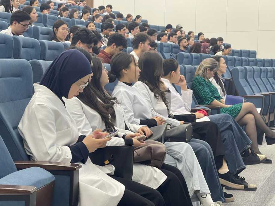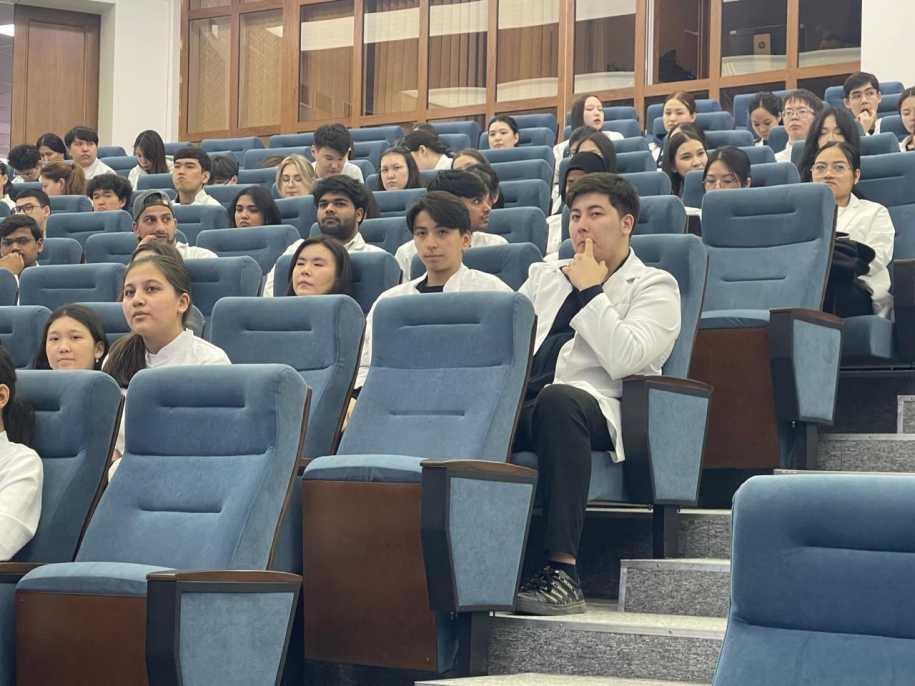 Перед будущими медиками выступили сотрудники департамента полиции города. Старший оперуполномоченный Управления по противодействию киберпреступности столичного Департамента полиции, капитан полиции Айдар Конысбек рассказал о наиболее распространенных схемах обмана, на которые сегодня чаще всего попадаются студенты. Он выступил на тему «Киберпреступность: новые угрозы и способы защиты».