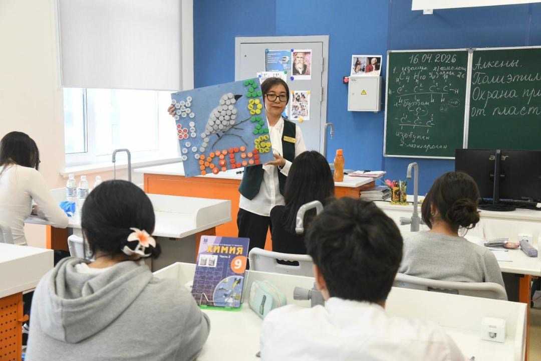 Сегодня мы проводим не только выставку, но и открытый урок, посвященный теме экологии. Такие мероприятия помогают повысить информированность наших учеников. Каждый из них на выставке будет защищать свою работу, а всего представлено около 100 творений юных авторов, – отметил директор школы Нуртас Жагабаев.