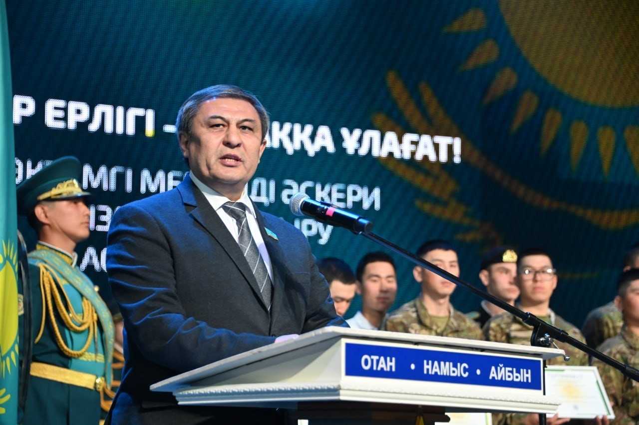 В ходе церемонии военнослужащих поздравил депутат Сената Парламента Галиаскар Сарыбаев.