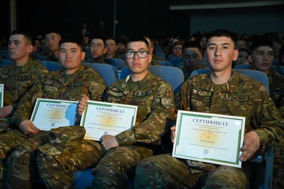 Образовательные сертификаты на обучение в высших учебных заведениях военнослужащим запаса вручил заместитель министра обороны по воспитательной и идеологической работе генерал-майор Аскар Мустабеков.