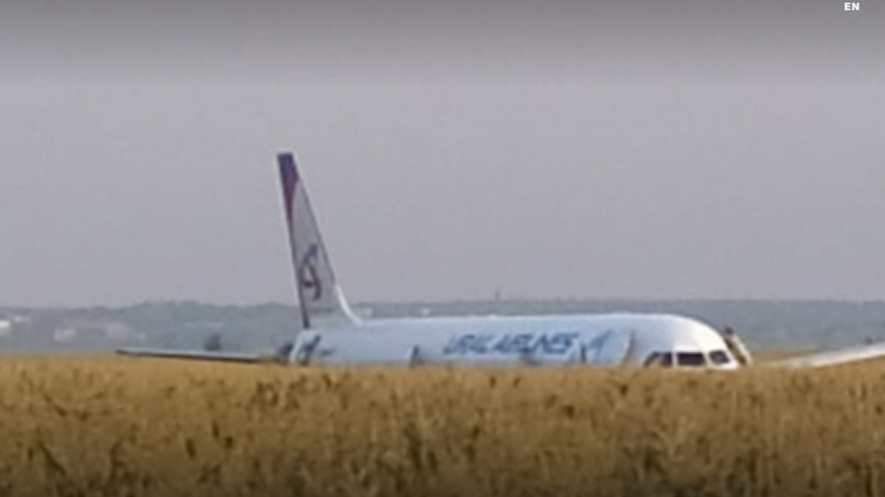 По словам собеседника ТАСС, экипаж самолета смог посадить лайнер на брюхо прямо в поле.