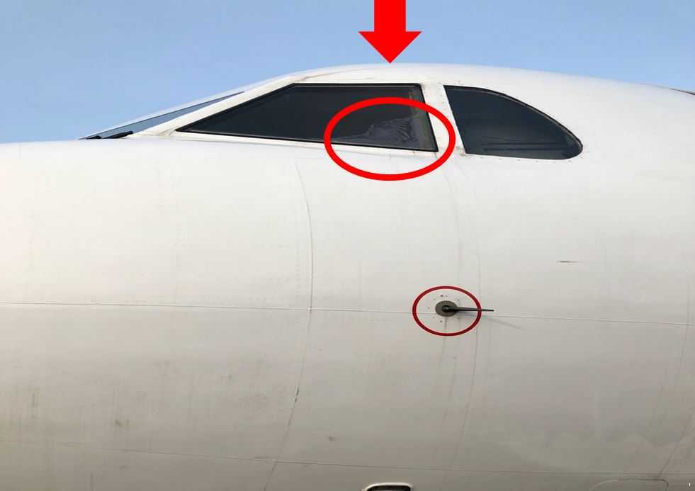 Далее было зафиксировано отслоение стекла левого движущегося окна в кабине пилотов.