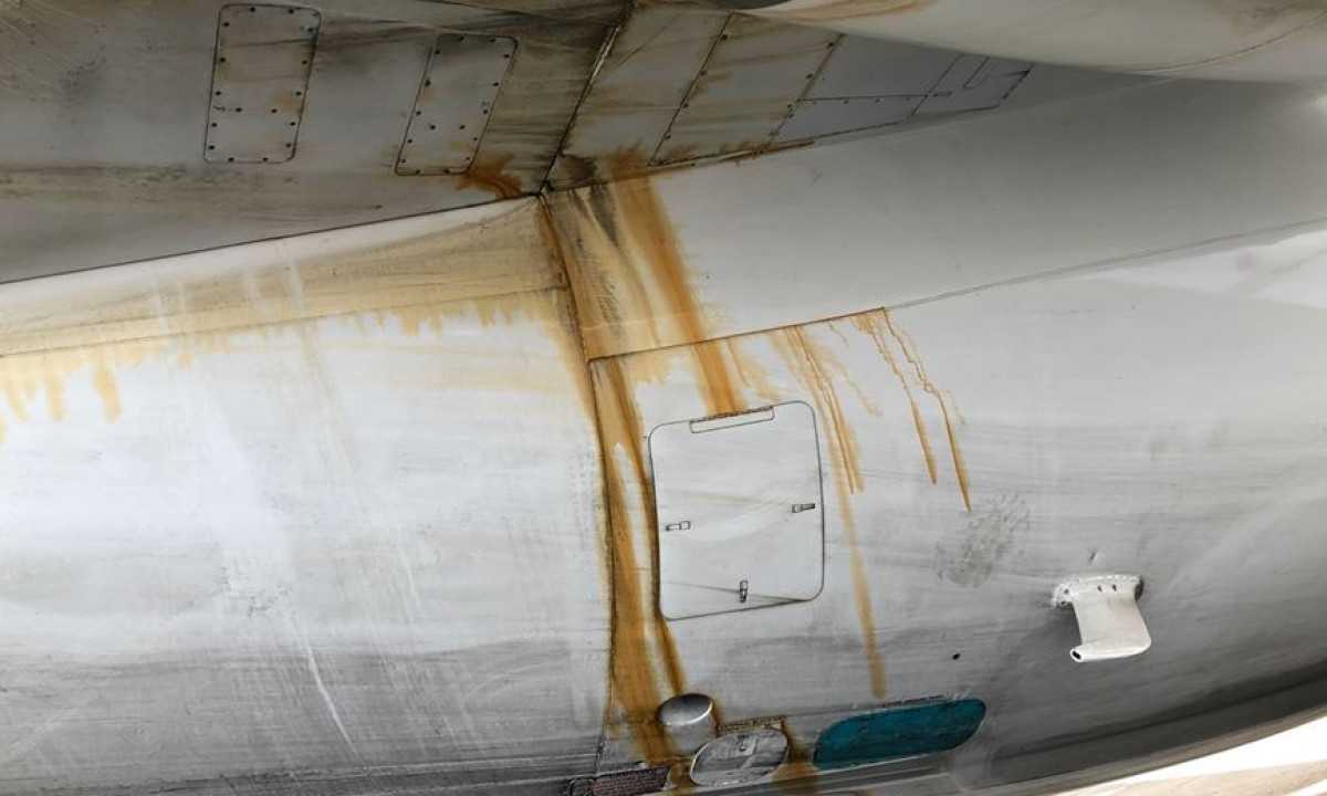 Еще один самолет – топливо протекло на взлетную полосу. Но никакой фиксации документальной не было. Нашли протечку неизвестной жидкости в пассажирском салоне с верхней панели справа, в районе 16 ряда. Были найдены дырки на половых панелях багажного отсека. Но никаких дырок у судна быть не должно. Отсутствие обработки краев полового покрытия в передней кухне и входе герметиком (повышен риск коррозии панелей под покрытием). Большая вмятина на правой части фюзеляжа перед передним багажным отсеком. Вмятина находится в опасной зоне и на шпангоуле, повреждение не внесено в реестр или какой-либо официальный документ, - сообщила Линда Орледи.