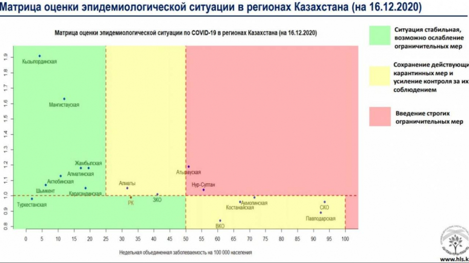 По данным матрицы оценки эпидемиологической ситуации в регионах Казахстана, также в «желтую» зону перешла Западно-Казахстанская область.