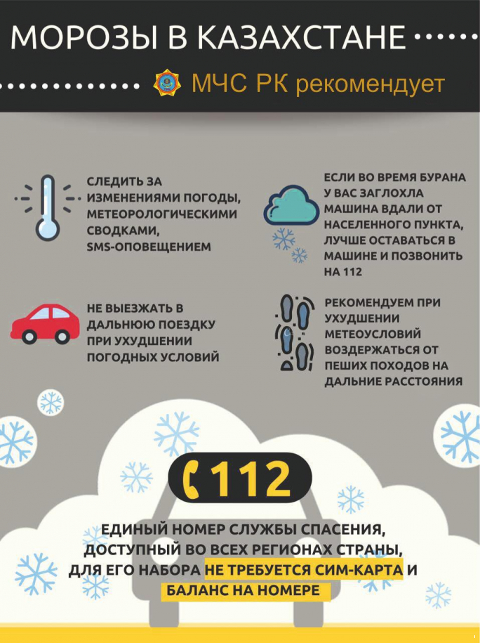 В этой связи, Министерство по чрезвычайным ситуациям настоятельно рекомендует при аномально низких температурах воздуха без необходимости не выходить на улицу, избегать пребывания на улице детей.