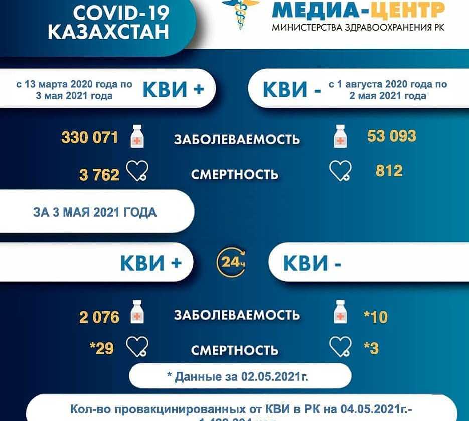 На 2 мая 2021 года зарегистрировано 10 новых случаев заболевания, 3 случая с летальным исходом. Выздоровели 50 человек.
