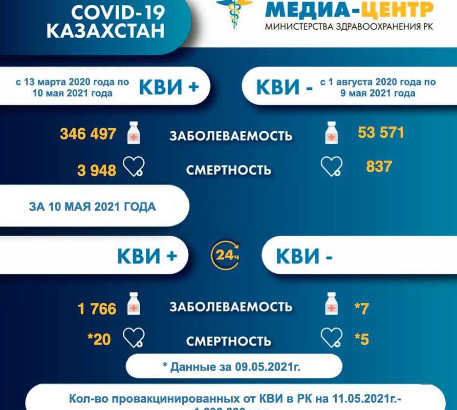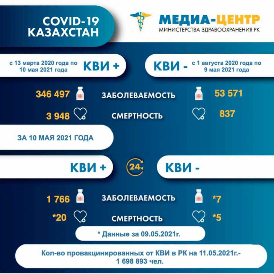 На 9 мая 2021 года зарегистрировано 7 новых случая заболевания, 5 случай с летальным исходом. Выздоровели 48 человека.