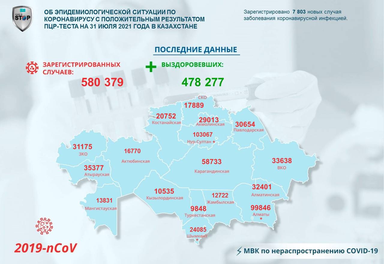 За прошедшие сутки зарегистрировано 7 803 новых случая заболевания коронавирусной инфекцией.