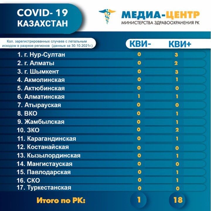 Количество зарегистрированных случаев с летальным исходом в разрезе регионов (данные за 30.10.2021г.)