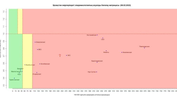 В «красной» зоне: гг. Нур-Султан, Алматы, Атырауская, Алматинская, Акмолинская, Актюбинская, Восточно-Казахстанская, Западно-Казахстанская, Карагандинская, Костанайская, Павлодарская, Северо-Казахстанская области