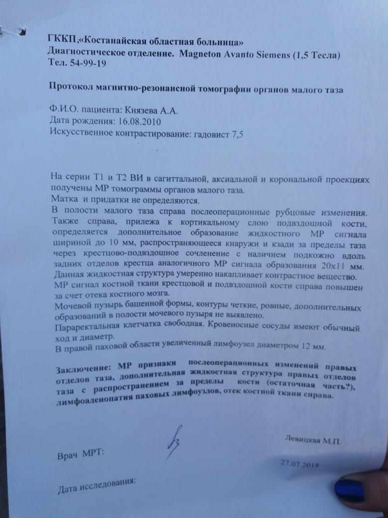 «Моей дочери вновь срочно требуется операция и химиотерапия. Она уже перенесла две операции и химию, но результаты последнего МРТ показали, что опухоль осталась. Сейчас нам нужны деньги на обследование и проживание в Астане, так как они будут проводить заново все обследования, поскольку не могут определить какие хирурги будут делать операцию, потому что после второй операции у Ангелины стала одна нога короче», — делится Оксана Князева.