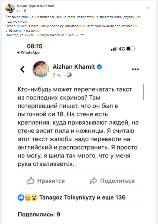 Эту информацию опровергла исполнительный директор ОФ «Хартия за права человека» Жемис Турмагамбетова.