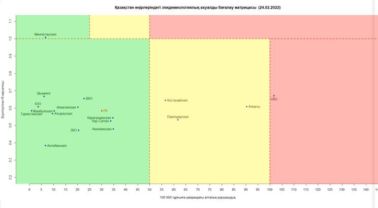 В «желтой» зоне: г. Алматы, Костанайская, Павлодарская области.