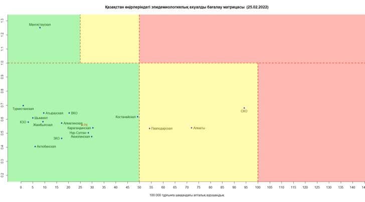 В «желтой» зоне: г. Алматы, Северо-Казахстанская, Павлодарская области.