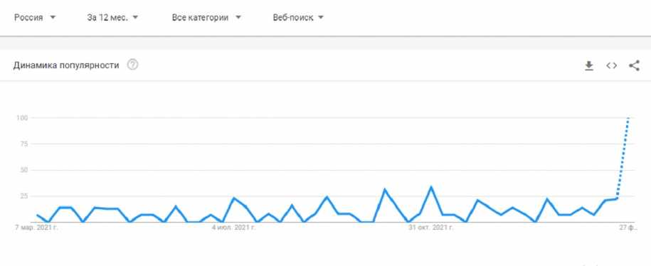 Так, если искать по запросу «как получить гражданство Казахстана» за год и указать в категории Россию, можно увидеть высокую динамику к концу февраля этого года.
