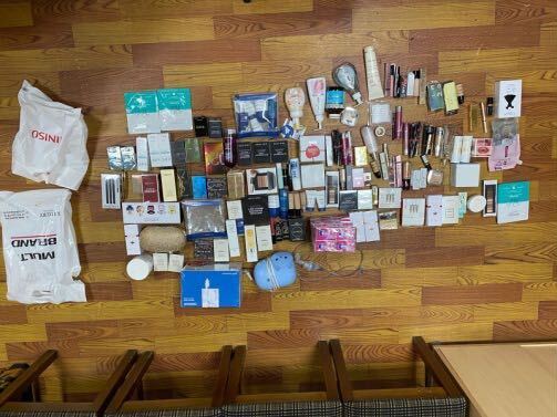 При проверке по месту проживания подозреваемых изъяты вещественные доказательства товары из магазина − элитный алкоголь, а также парфюмерные и косметические изделия в количестве 130 наименований. Кроме того, изъяты товары, похищенные из кофейни, сувенирного магазина и аптеки в количестве 94 наименований.