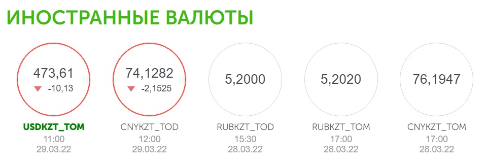 По итогам утренних торгов 29 марта средневзвешенный курс доллара составил 473, 61 тенге, понизившись сразу на 10,13 тенге, передаёт kazlenta.kz со ссылкой на KASE.