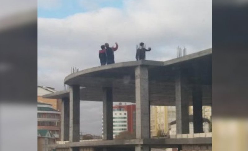 Жительница Актау запечатлела на камеру мобильного телефона школьников, делающих селфи у края крыши строящегося здания в 14 микрорайоне, передает inaktau.kz.