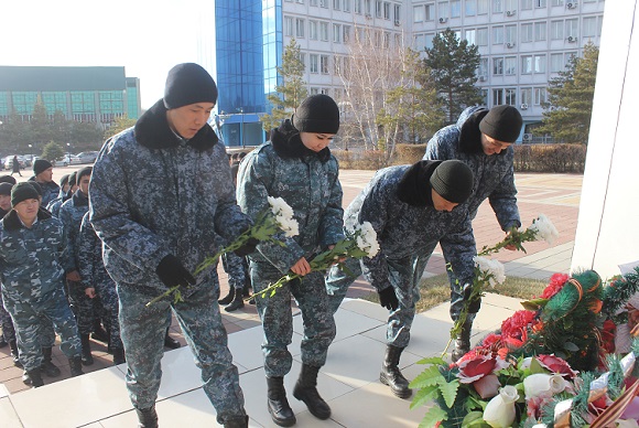 Цветы к мемориалу памяти погибшим полицейским возложили в Костанае