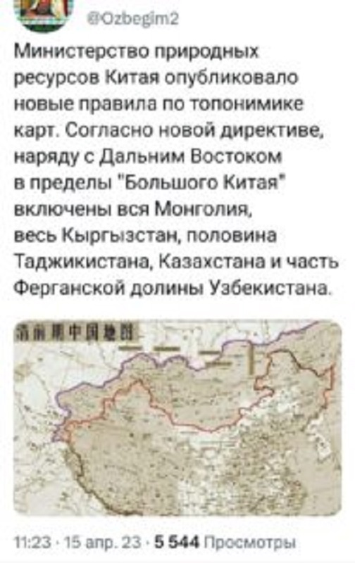В Казнете распространяется карта, якобы опубликованная Министерством природных ресурсов Китая. Согласно ей, часть Казахстана, Таджикистана, Узбекистана, а также Монголия, Кыргызстан и дальний Восток являются частью Китая. Проверяем, что это за карта на самом деле, передает kazlenta.kz со ссылкой на Stopfake.kz.