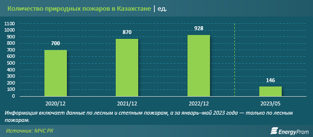 За последние три года количество природных пожаров в Казахстане выросло на 32,6%. По данным МЧС РК, в первом году пандемии, 2020-м, их было 700, по итогам прошлого года — уже 928. Площадь лесов и степей, охваченных огнём, в 2022-м была огромной: более 104 тыс. га. Ущерб от таких ЧС природного характера в прошлом году превысил 20,6 млрд тг.