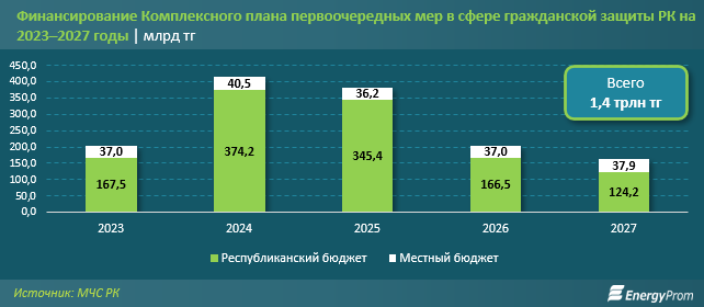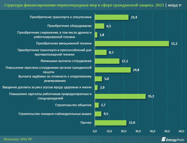 План предусматривает финансирование по большинству озвученных проблемных вопросов — от покупки спецтранспорта и авиатехники до повышения зарплат на 10%–70%. Общая сумма на четыре года — 1,4 трлн тг. Большая часть средств (86,2%) должна быть выделена из республиканского бюджета. На этот год предусмотрено 204,5 млрд тг, на следующий — уже 414,7 млрд тг.