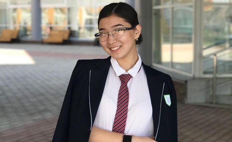 Девочка учится в 12 классе физико-математического направления в НИШ Уральска.