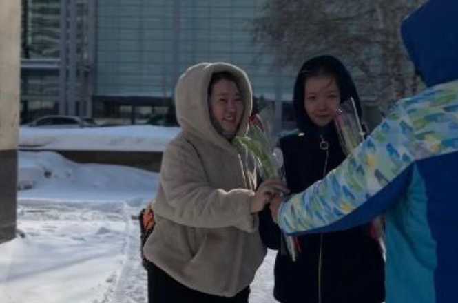 В рамках акции волонтеры раздали 600 тюльпанов астанчанкам в общественных местах.